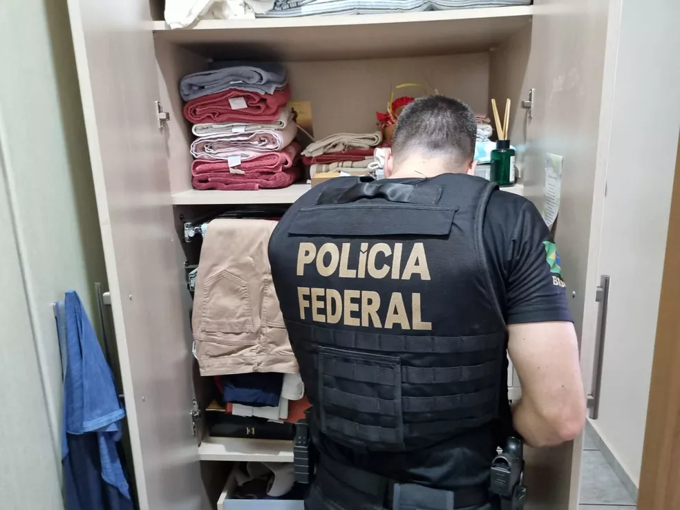 Agente da PF faz buscas durante operação Polígrafo — Foto: PF/Reprodução