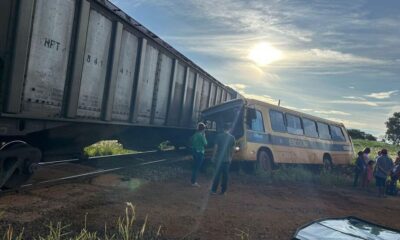 CORREIO DO ESTADO Três alunos ficaram feridos após batida entre trem e ônibus escolar, na manhã desta quarta-feira (6), na região de Alagoinha, em Aparecida do...