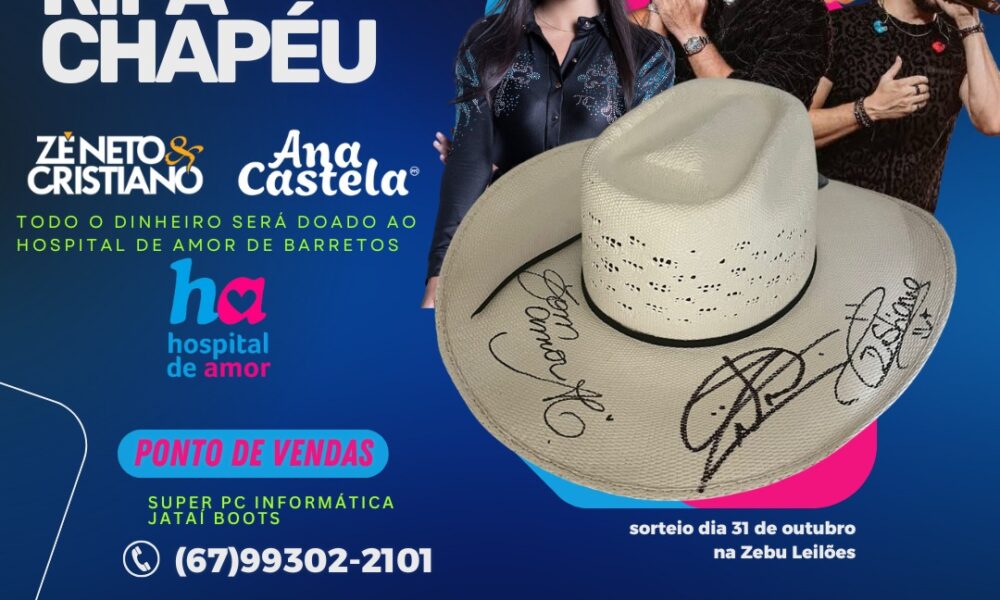 🎉 RIFA SOLIDÁRIA LIBERADA! 🎉 Concorra a um chapéu autografado por Ana Castela e Zé Neto & Cristiano! 🤠🎤 Só R$10 por número! 📍 Pontos de...